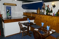 A highly characterful dining area, full of marine and other artifacts, having beamed ceiling, pine-clad walls to dado height with exposed granite above. There are two large granite fireplaces, one with antique cast-iron range cooker inset. The main feature of the room must, however, be the bow and stern of two local Pilot Gigs, the Gipsy and Zelda, which have been built into the walls above fitted alcove seating. The restaurant has seating for up to 40 covers, usually operating on two sittings per night, and is equipped with a bar counter, having fitted single bowl sink unit and Casio electronic till.