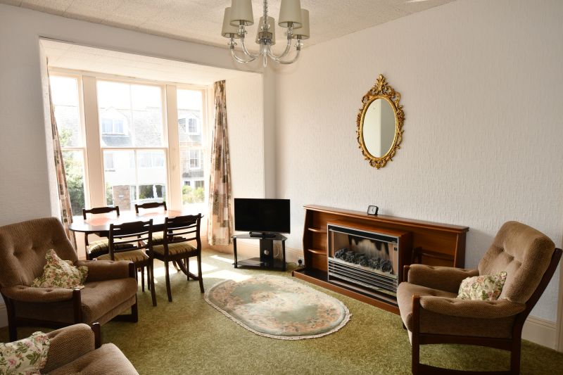 It is a spacious flat with generous room sizes and high ceilings, typical of properties of this period. A particular feature of Flat 8 is its large square bay window which affords South-facing views up and down Church Street from the lounge. At the rear there are views of the harbour and across to the islands of Samson and Bryher from the kitchen.